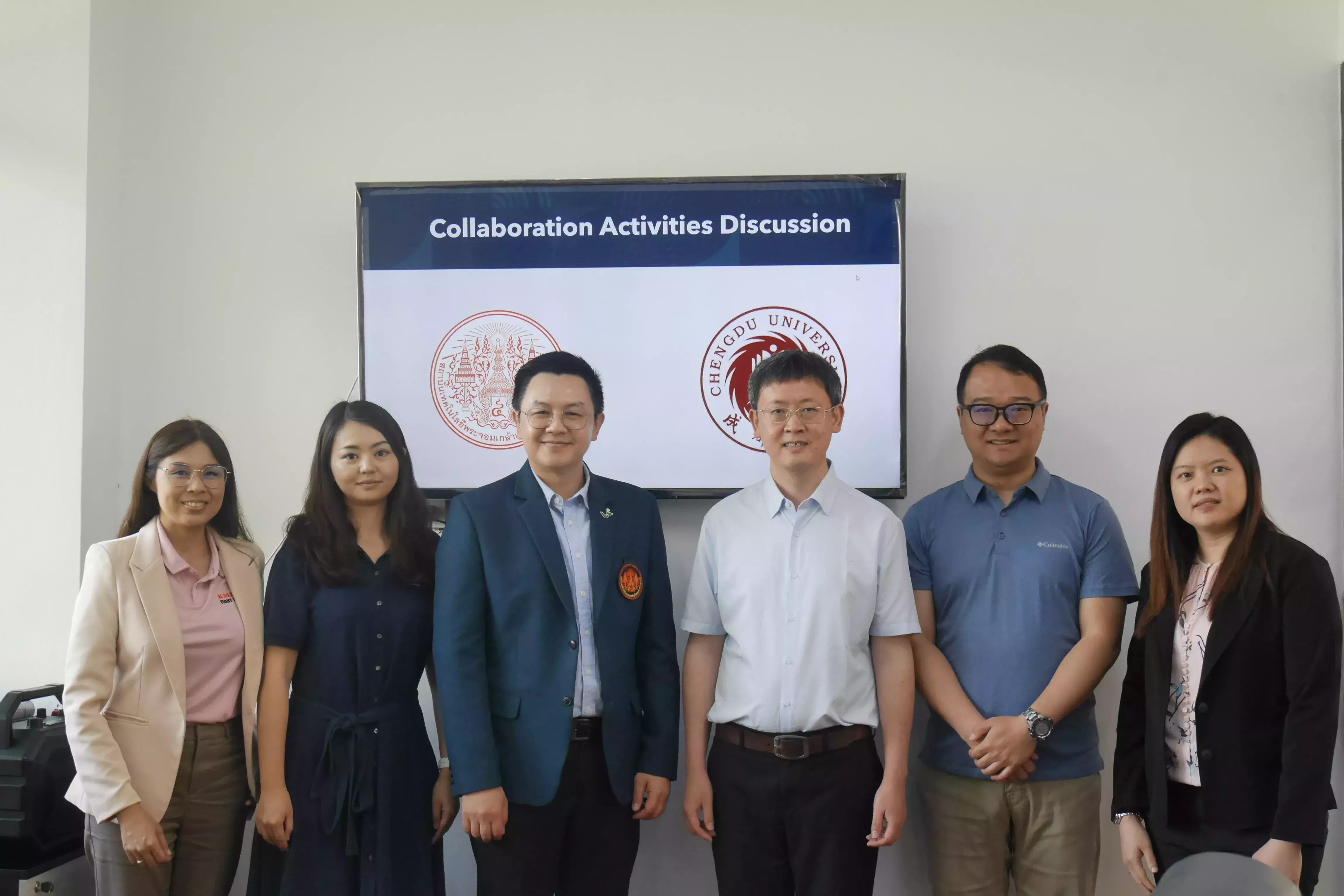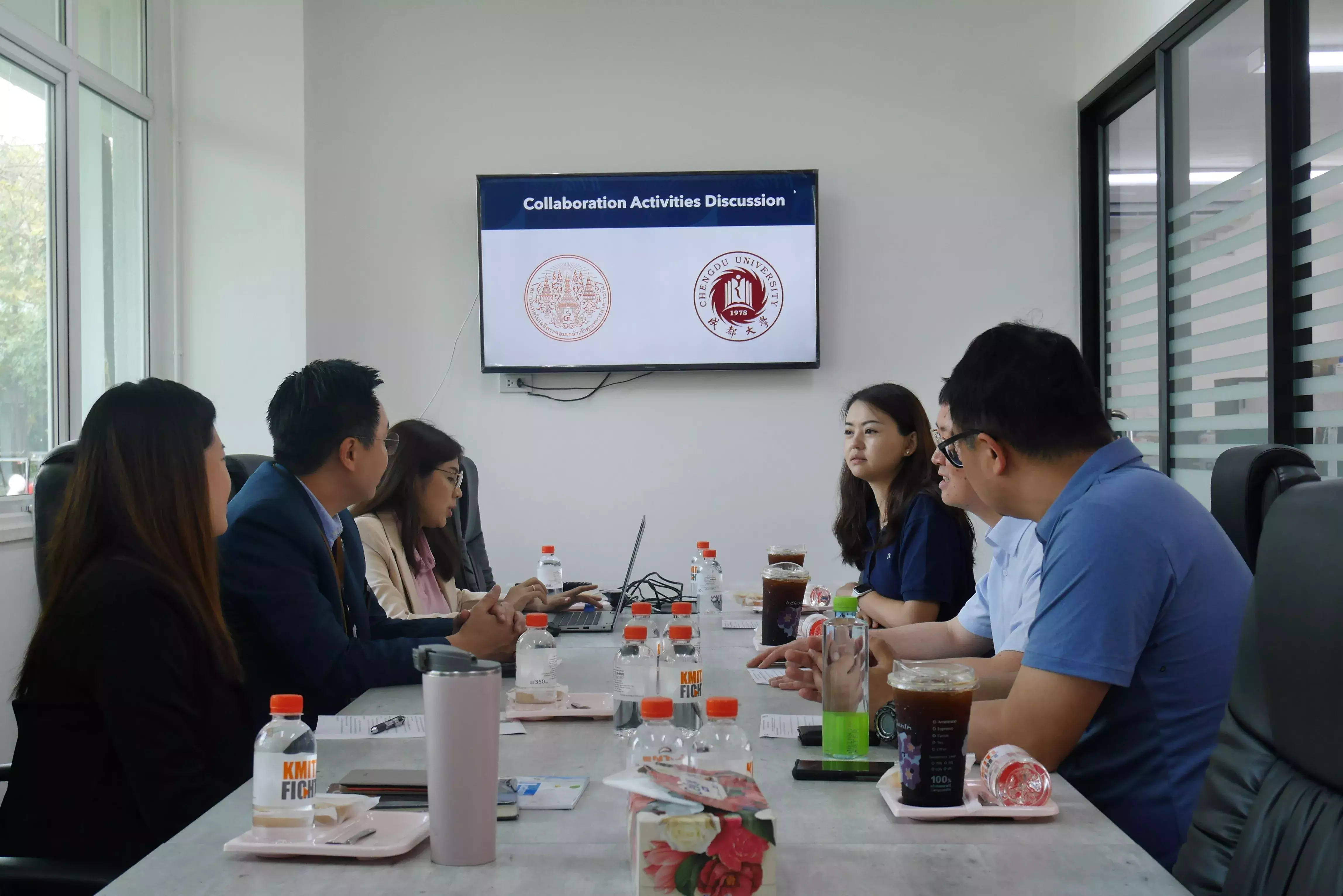 โดยการพบปะกันในครั้งนี้ นักวิจัยของทั้งสองฝ่าย ได้นำเสนอความก้าวหน้าของโครงการวิจัยที่ดำเนินการร่วมกันภายใต้ MOU ระหว่าง สจล. และ Chengdu University จำนวน 2 โครงการ นอกจากนี้ ทั้งสองฝ่ายยังได้หารือการจัดกิจกรรมแลกเปลี่ยนเรียนรู้ระหว่างบุคลากรและนักศึกษา รวมถึงความร่วมมือทางวิชาการอื่น ๆ ในอนาคต พร้อมทั้งเยี่ยมชมบรรยากาศภายในสถาบัน และรับประทานอาหารร่วมกัน ณ FI Kitchen คณะอุตสาหกรรมอาหาร