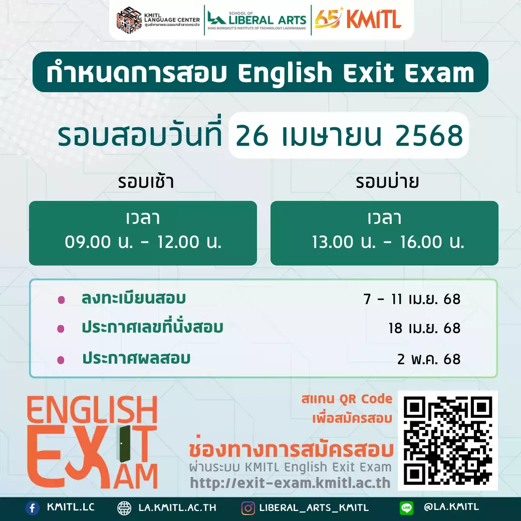 . สมัครสอบที่: http://exit-exam.kmitl.ac.th |