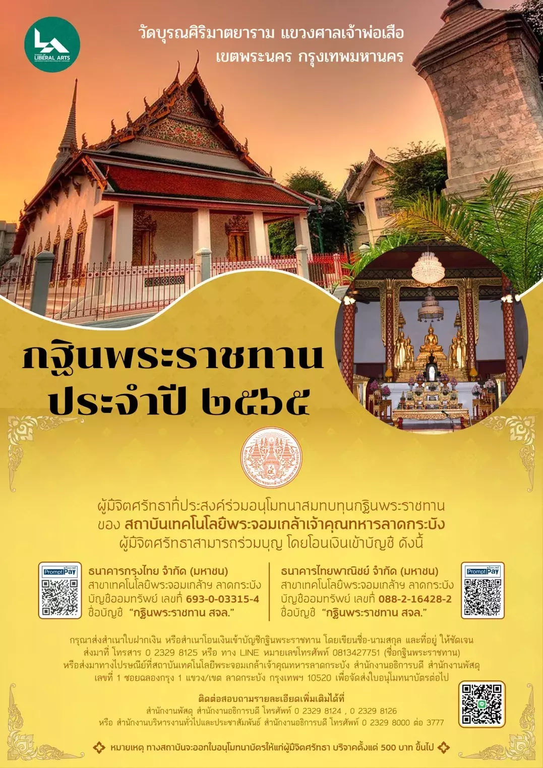 คณะศิลปศาสตร์ ขอเชิญผู้มีจิตศรัทธาร่วมอนุโมทนาบุญสมทบทุนกฐินพระราชทาน ปี 2565