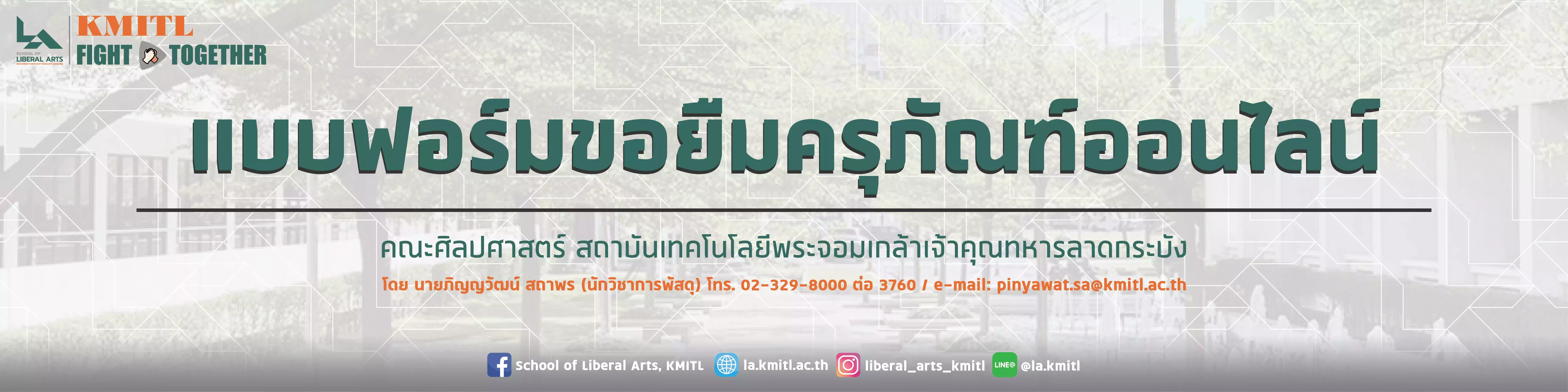 ✦ ใบยืมครุภัณฑ์ออนไลน์ คณะศิลปศาสตร์ สจล. สำหรับใช้ขอยืมครุภัณฑ์ (ครุภัณฑ์คอมพิวเตอร์) คณะศิลปศาสตร์