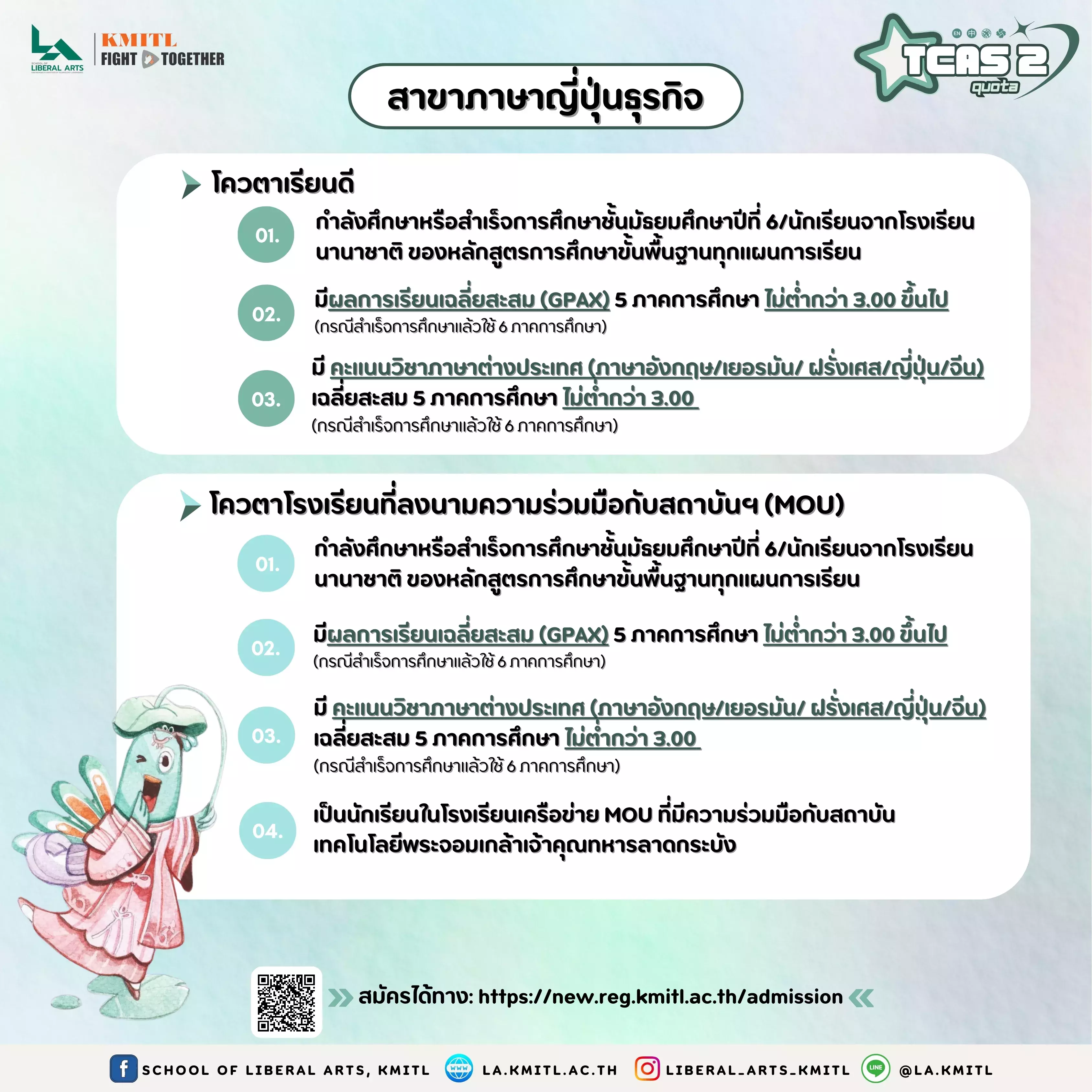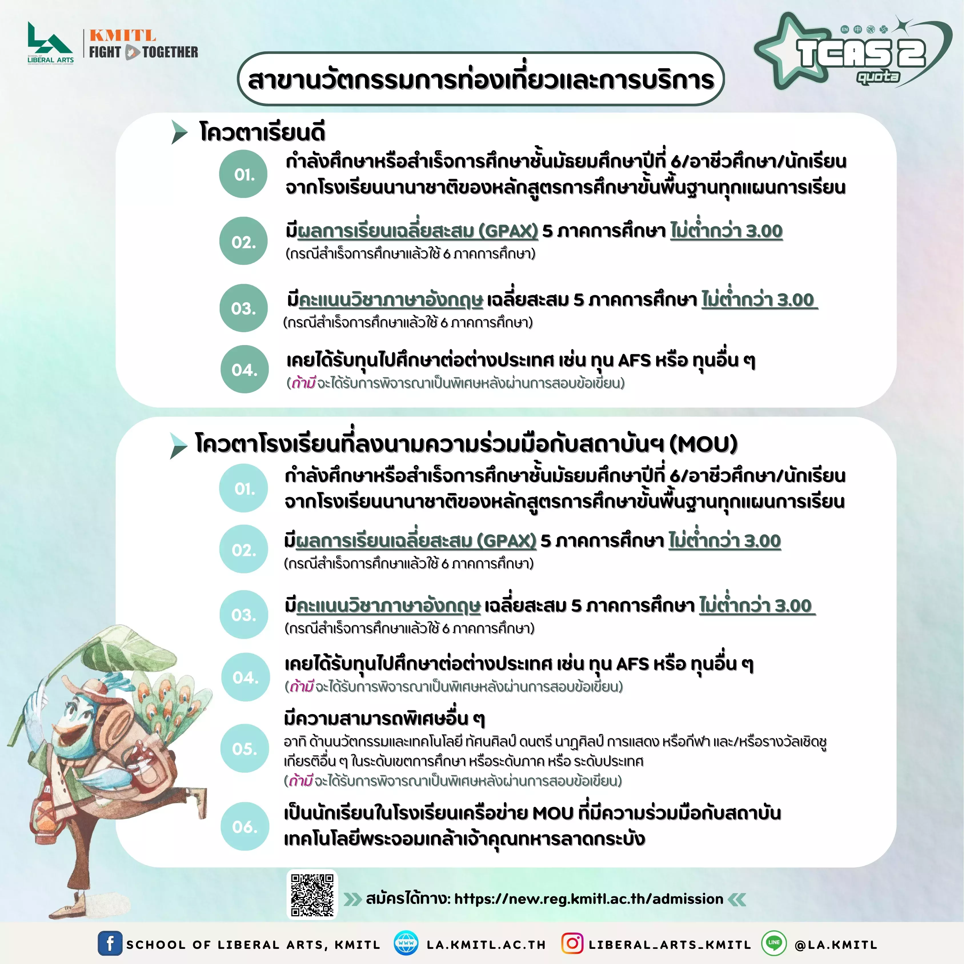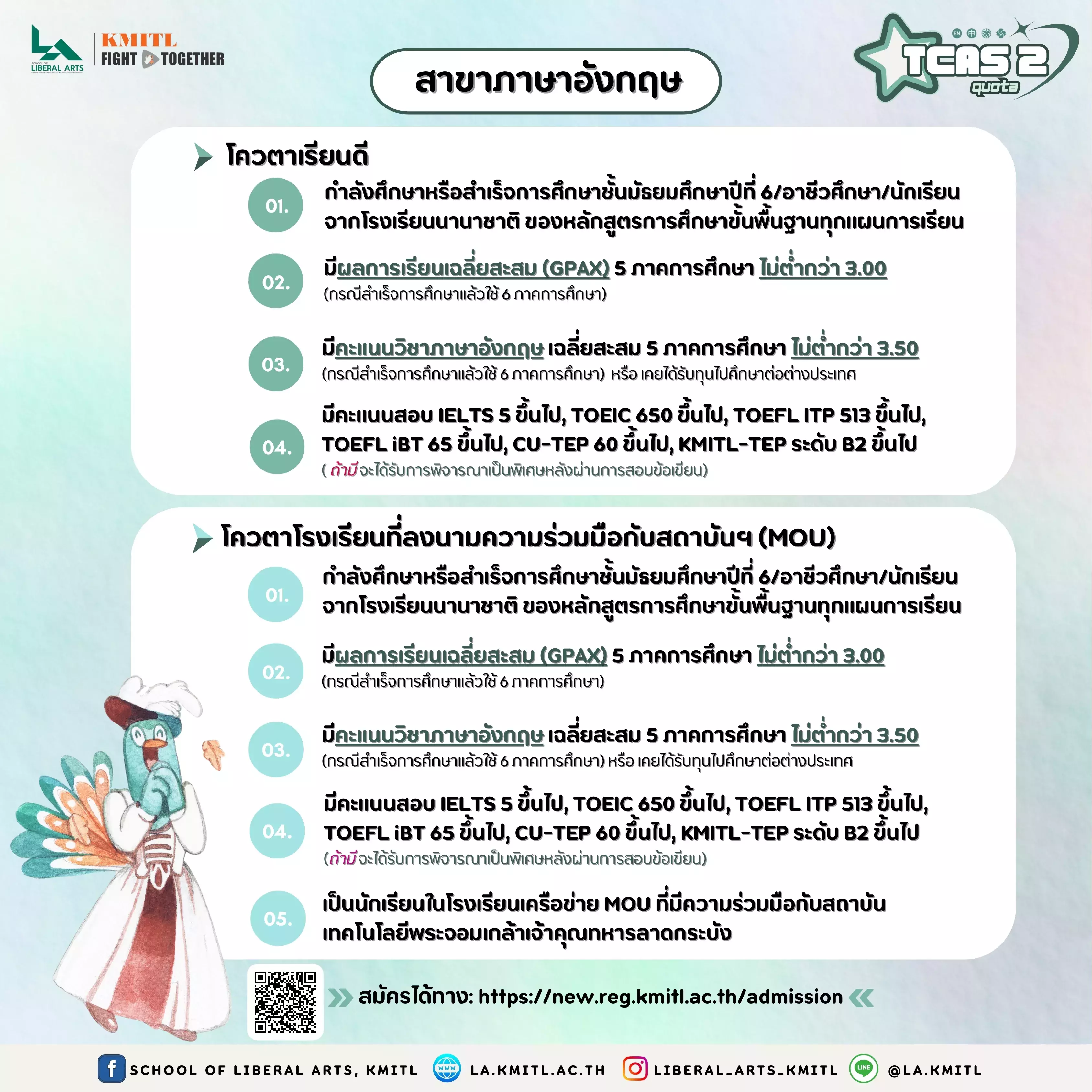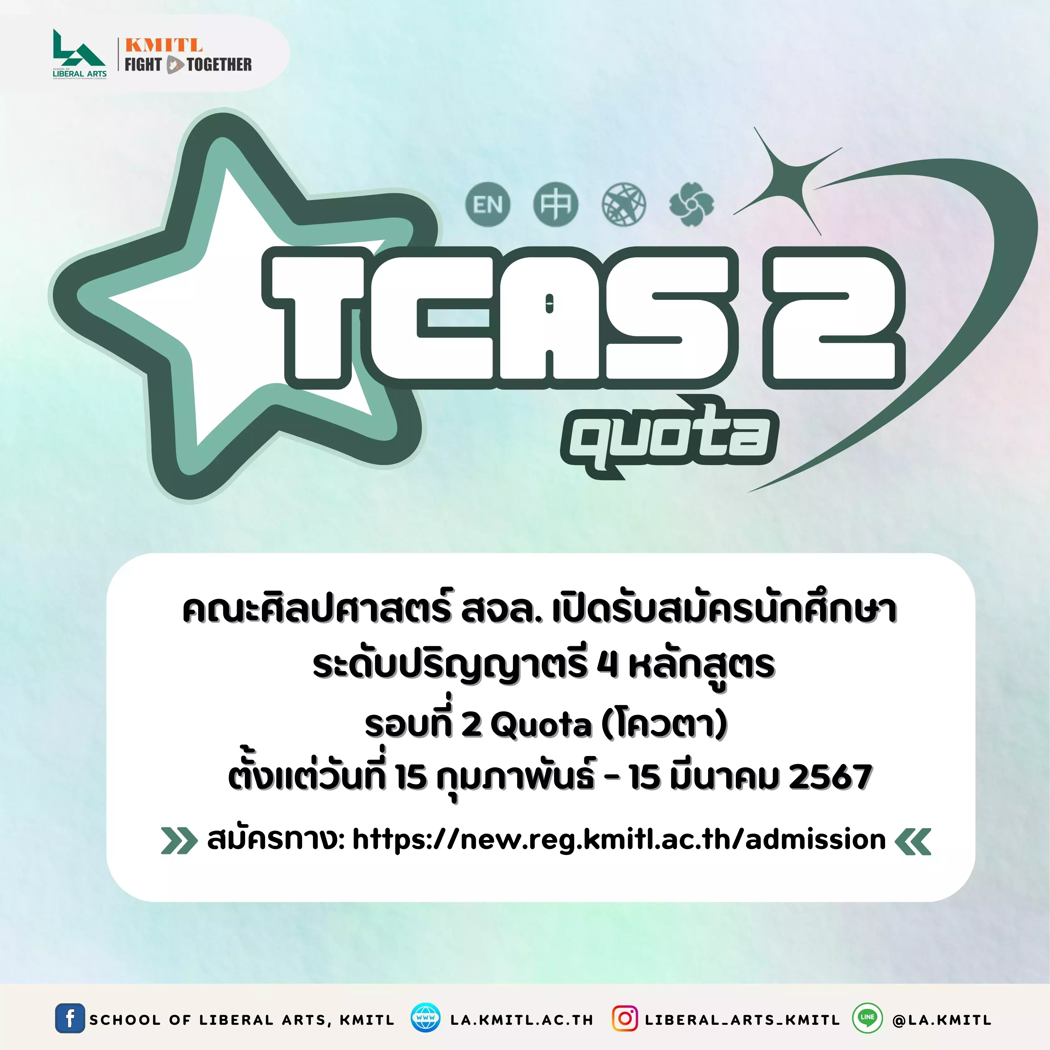 คณะศิลปศาสตร์ สจล. เปิดรับสมัครนักศึกษาใหม่ TCAS รอบที่ 2 รอบ Quota ทั้งหมด 4 สาขา