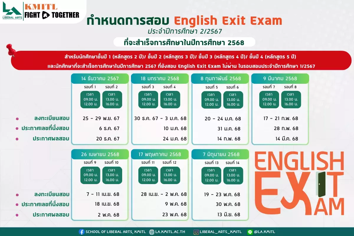 กำหนดการสอบ English Exit Exam