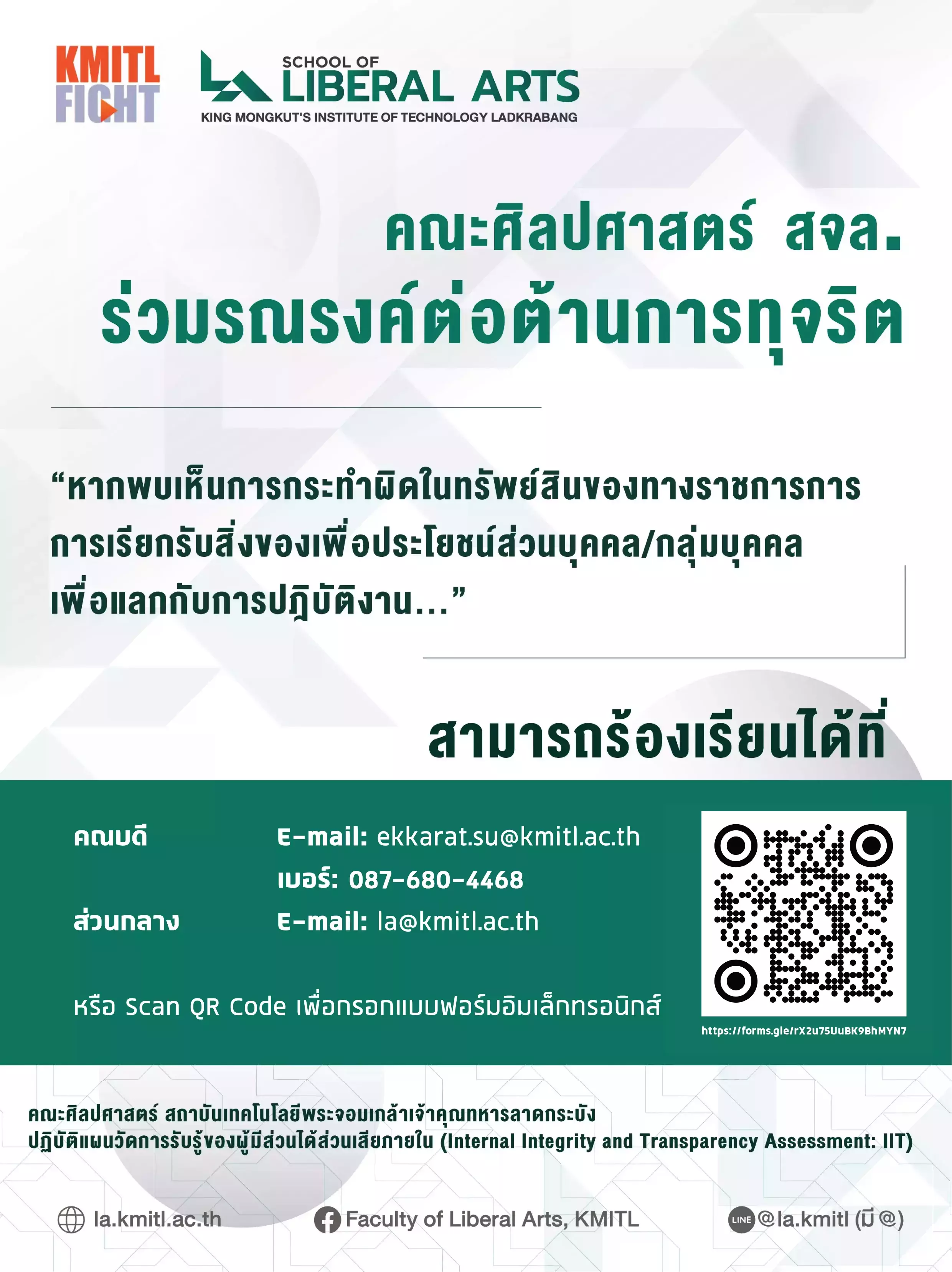 | • ติดต่อร้องเรียนเรื่องทุจริต ระดับคณะ |